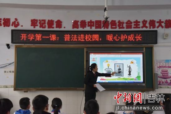 中新網(wǎng)吉林新聞3月1日電 (譚偉旗 姜美辰 徐萌)為進(jìn)一步加強(qiáng)青少年法治宣傳教育,切實預(yù)防和減少青少年違法犯罪保護(hù)未成年人合法權(quán)益的發(fā)生,護(hù)航青少年健康成長。2月28日,柳河縣人民法院刑事庭的法官干警走進(jìn)姜家店鄉(xiāng)中心校開展“開學(xué)第一課”普法進(jìn)校園活動,為同學(xué)們上了一堂生動的法治教育課。