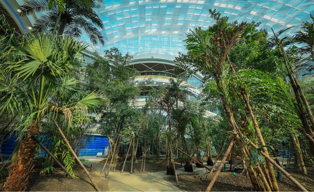 走進建設(shè)中的長春萬達茂,各商家即將進入到裝修階段,記者看到在碩大的一樓空間內(nèi),兩側(cè)密集分布著餐飲、服裝、文創(chuàng)、汽車等不同業(yè)態(tài)的品牌商家。穿過商場來到中庭,這里就是備受矚目的室內(nèi)雨林,在東北難得一見的熱帶珍稀植物在這里茂盛生長。