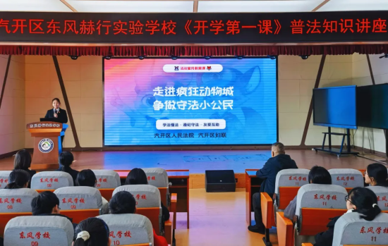 中新網(wǎng)吉林新聞3月17日電 新學(xué)期伊始,一堂特殊的法治課在長(zhǎng)春東風(fēng)赫行實(shí)驗(yàn)學(xué)校開(kāi)講。長(zhǎng)春汽車經(jīng)濟(jì)技術(shù)開(kāi)發(fā)區(qū)人民法院聯(lián)合區(qū)婦聯(lián)走進(jìn)校園,以“開(kāi)學(xué)第一課”形式開(kāi)展未成年人防欺凌專題普法。