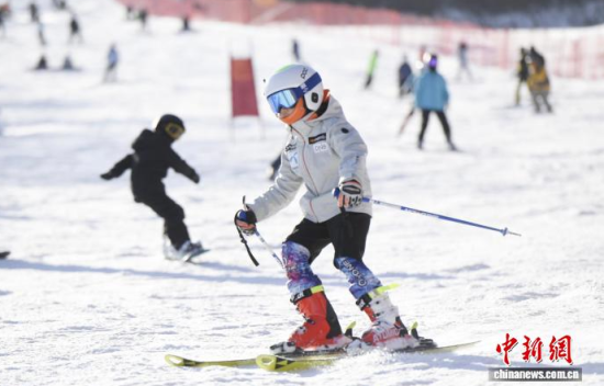 吉林霧凇冰雪節(jié)開幕當(dāng)天,游客在中旅松花湖滑雪場暢滑!∈橛 攝