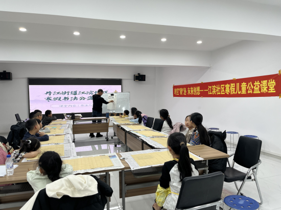 翰墨飄香潤育童心,筆走龍蛇書寫成長。江濱社區(qū)黨委以傳承中華優(yōu)秀傳統(tǒng)文化為抓手,依托書法公益課堂搭建文化傳承平臺(tái),以筆墨傳文化、以書香育新人。一是名師領(lǐng)航夯基礎(chǔ)。邀請(qǐng)轄區(qū)書法教師段老師現(xiàn)場授課,以專業(yè)教學(xué)助力孩子們感受書法魅力、傳承優(yōu)秀文化;二是循序漸進(jìn)長才干。段老師從握筆姿勢(shì)、基本筆畫教起,聚焦楷書基礎(chǔ),通過示范指導(dǎo)、一對(duì)一糾正,幫助孩子們?cè)鷮?shí)掌握書寫技巧,培養(yǎng)持之以恒的韌勁、嚴(yán)謹(jǐn)認(rèn)真的態(tài)度、精益求精的追求;三是以書潤心強(qiáng)自信。結(jié)合書寫春聯(lián)、福字等形式,與孩子們一同揮毫潑墨,讓孩子們?cè)诠P墨間體悟傳統(tǒng)文化的博大精深,在書寫中根植文化自信,在傳承中凝聚民族力量,推動(dòng)中華優(yōu)秀傳統(tǒng)文化在青少年中薪火相傳。