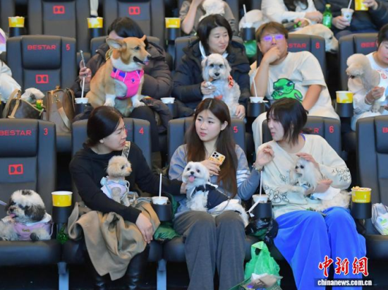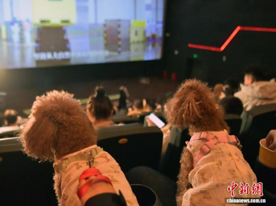 12月5日晚,吉林長春,兩只“汪星人”在觀影。近日,吉林長春一家影院創(chuàng)新推出“寵物陪伴觀影”特色專場,吸引不少市民帶著愛寵一同走進(jìn)電影院,共享觀影樂趣。為提升“人寵共處”的體驗,影院專門對場內(nèi)光線與音量進(jìn)行了適應(yīng)性調(diào)整,并提前備好寵物坐墊、尿不濕等應(yīng)急物品,力求為寵物和主人打造一個舒適、安心的觀影環(huán)境。中新社記者 張瑤 攝