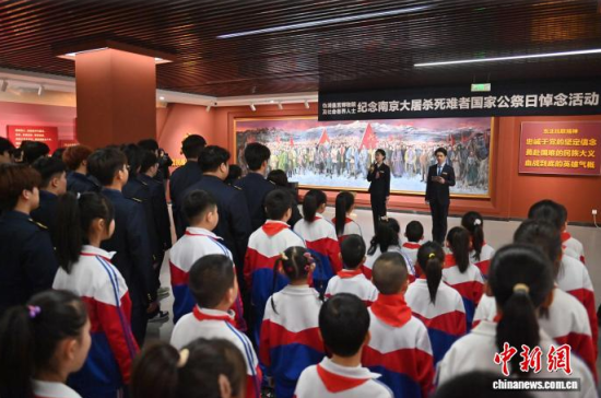 12月13日,吉林長春,民眾參觀“艱苦卓絕十四年——東北人民抗戰(zhàn)史實陳列”。當(dāng)天是南京大屠殺死難者國家公祭日,長春各界人士來到偽滿皇宮博物院暨東北淪陷史陳列館,悼念南京大屠殺死難同胞和抗戰(zhàn)英烈。 中新社記者 張瑤 攝