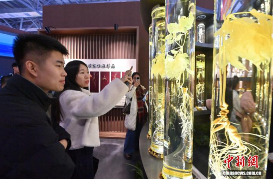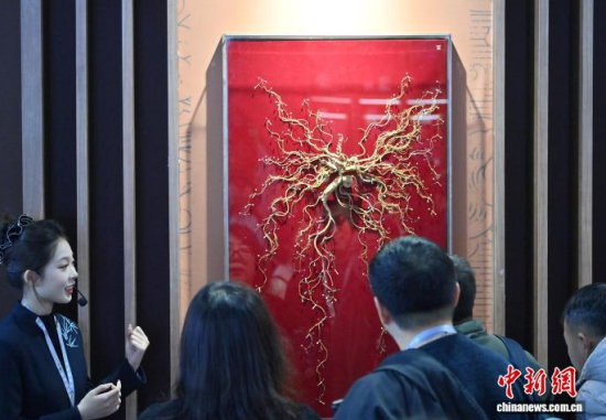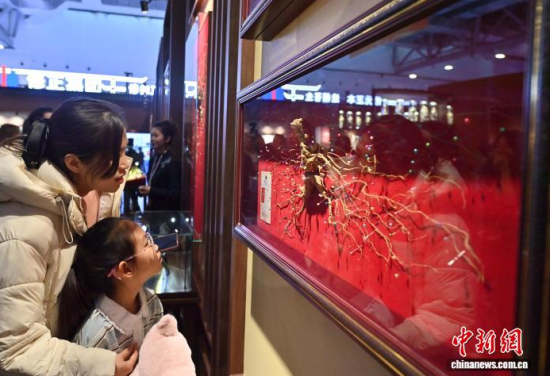 12月7日,吉林長春,參觀者在參觀人參。當日,2025長春國際醫(yī)藥健康產業(yè)博覽會開幕,具有當地特色的千年野山參、人參標本在人參展區(qū)展出,吸引了參觀者的目光。中新社記者 張瑤 攝