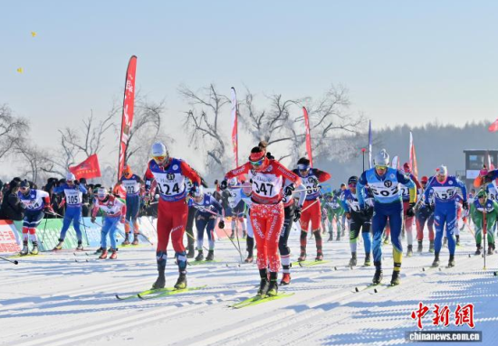 1月4日,第24屆中國長春凈月潭瓦薩國際滑雪節(jié)在長春開幕,來自33個國家和地區(qū)的2227名專業(yè)運動員和大眾滑雪愛好者在凈月潭的林海雪原間展開速度與耐力的較量。中新社記者 張瑤 攝