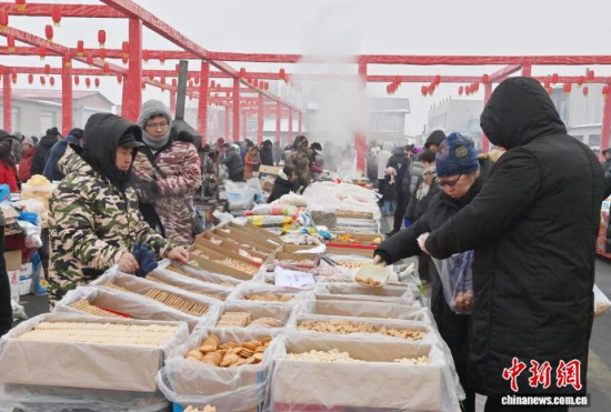2月4日,吉林長(zhǎng)春樂(lè)山大集上人頭攢動(dòng),民眾正忙著挑選年貨。歷經(jīng)百年的樂(lè)山大集,是長(zhǎng)春市具有代表性的傳統(tǒng)大集。臨近春節(jié),大集愈發(fā)紅火,各類傳統(tǒng)年貨琳瑯滿目,民眾置辦年貨、品嘗風(fēng)味,處處洋溢著熱鬧喜慶的節(jié)日氣氛。中新社記者 張瑤 攝