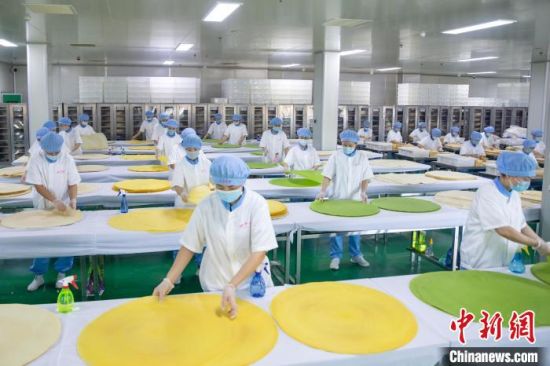工人正在煎餅車間里工作。 敦化市委宣傳部供圖