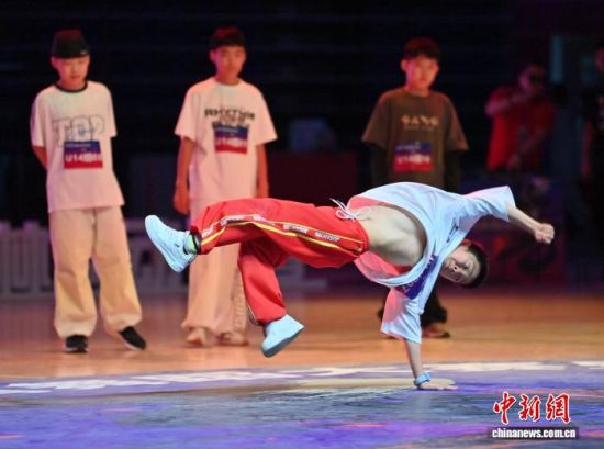 9月6日,一名街舞選手在比賽中!埇 攝