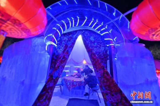 2月4日,在吉林長春世界雕塑園內(nèi),一座晶瑩剔透的冰屋中熱氣繚繞,來自上海的游客圍坐在冰桌前,品嘗著沸騰的火鍋,親身體驗“冰火兩重天”的奇妙感受。張瑤 攝